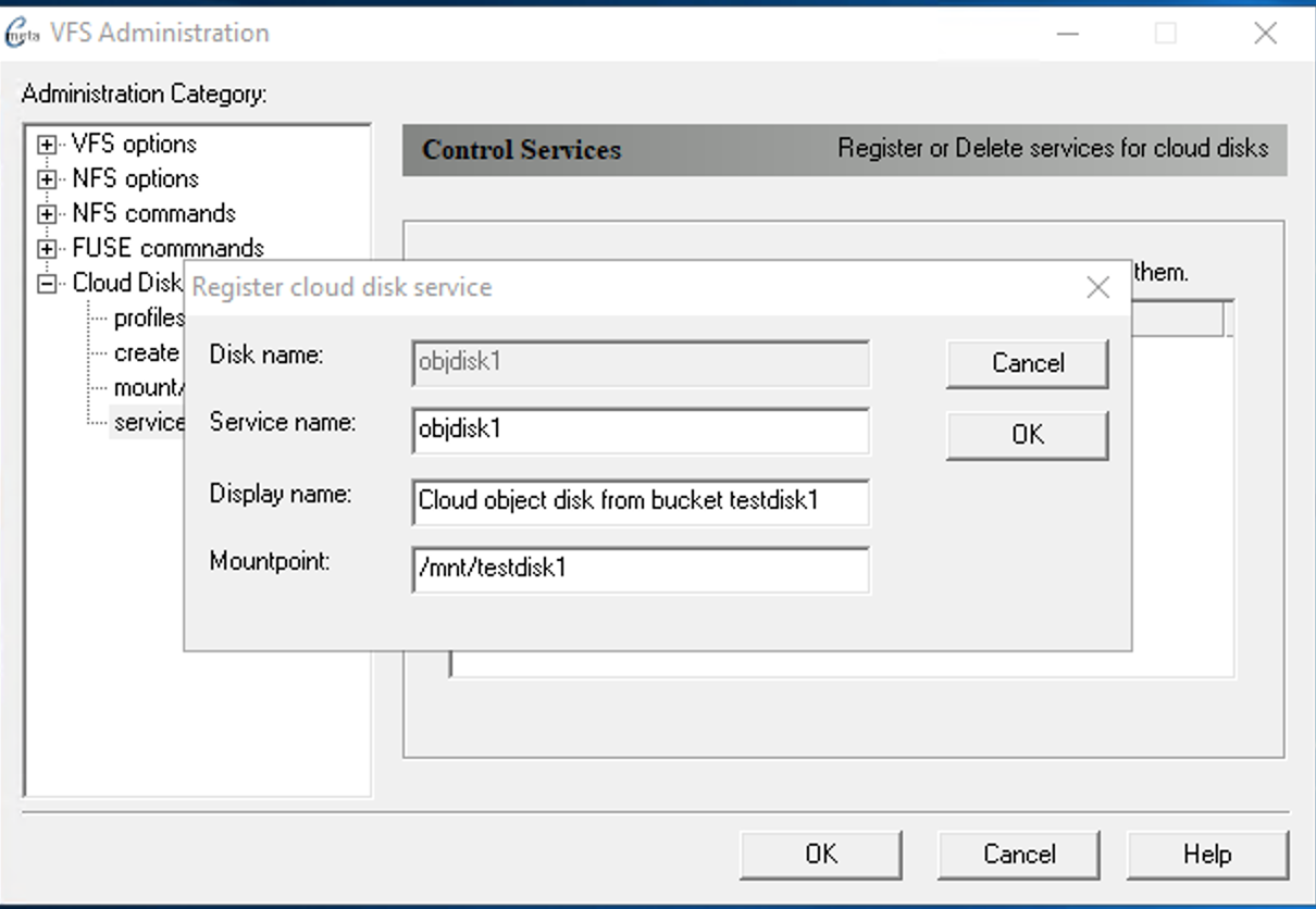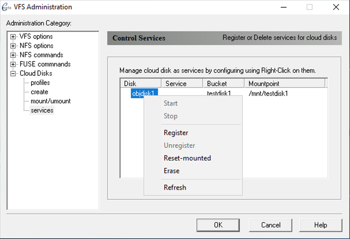 Right-click on Disk and select Register from popup menu. - In the Register cloud disk service you may accept the default values or change accordingly.