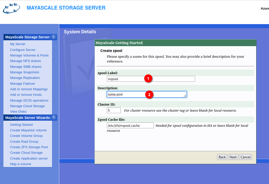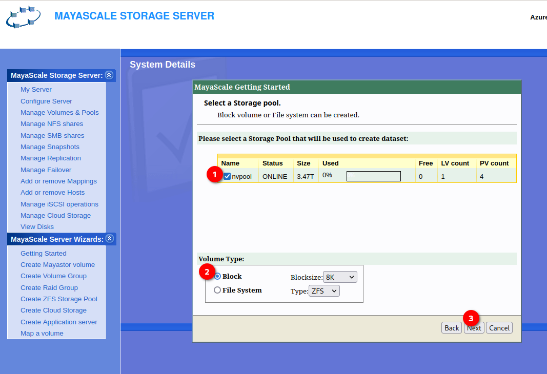 • Label: Enter volume name the checkbox under Name columne of the storage pool