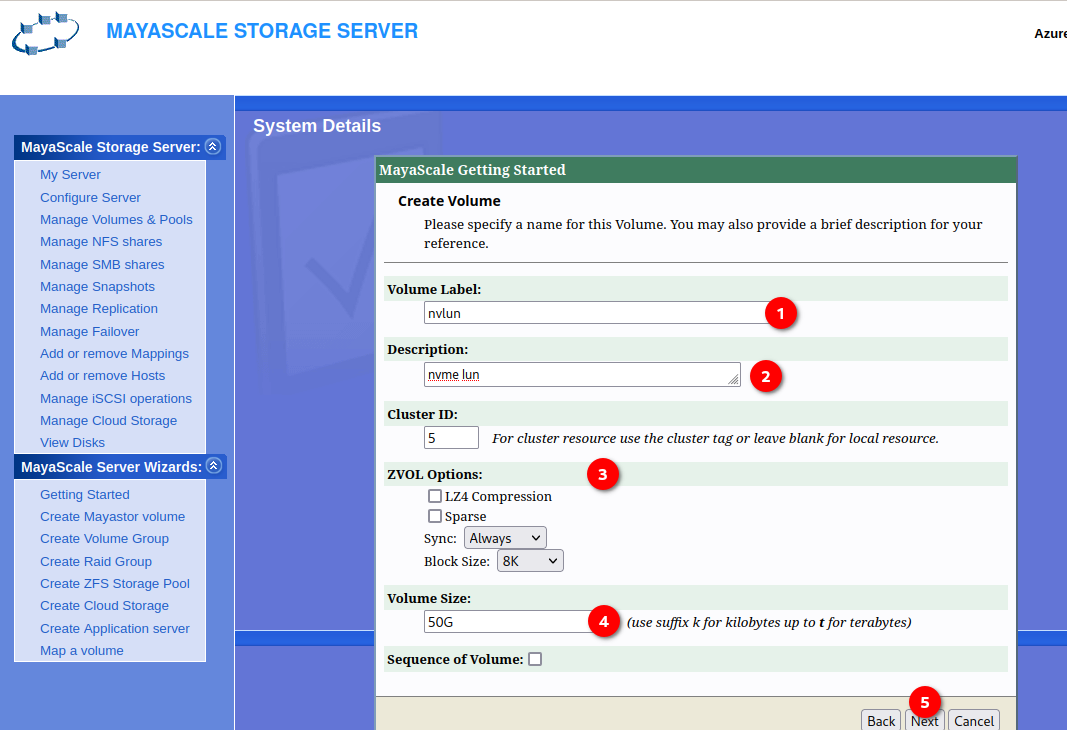 • Sequence Volume: Select if more than one volumes in sequence to be created.