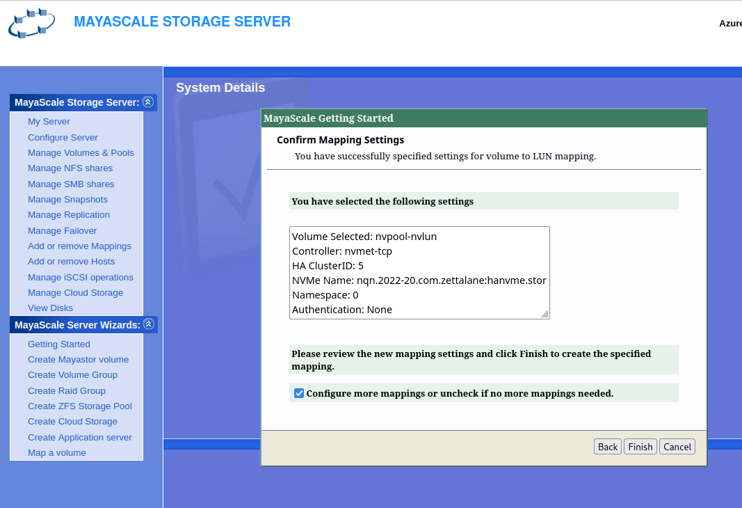 If there are more mappings to be specified for other volumes click on checkbox to Configure more mapping and the next step will present you with option to provide more mappings.