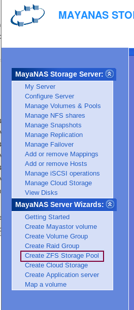 Click Manage Volumes & Pools → Zpools tab for managing existing ZFS pools.