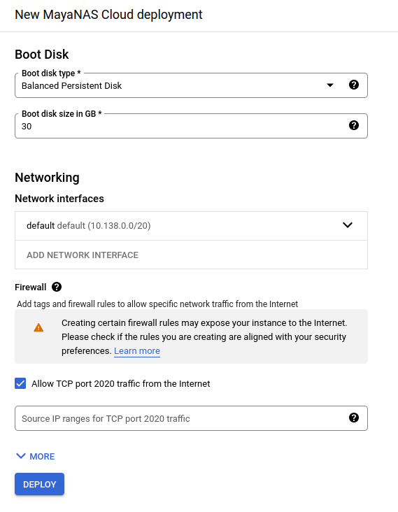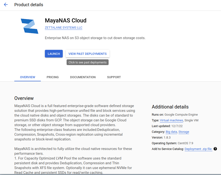 Launch MayaNAS from Google Cloud Marketplace