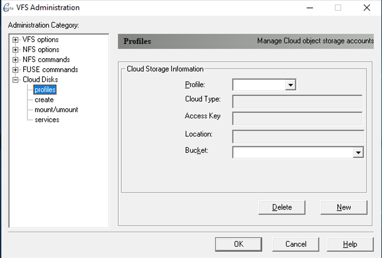 Select the cloud profile to use for creating object storage disk. You can select an existing Bucket from the list or enter one manually which will create a new bucket for you. Logical size of VHDX up to 64TB allowed by Windows. Fill in the following information for the new Disk
